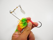 ヘッドとフックをスプリットリングで接続、その上に圧縮チューブを被せた半遊動式のフックシステムを搭載し、これまでのスピナーベイトの弱点であった