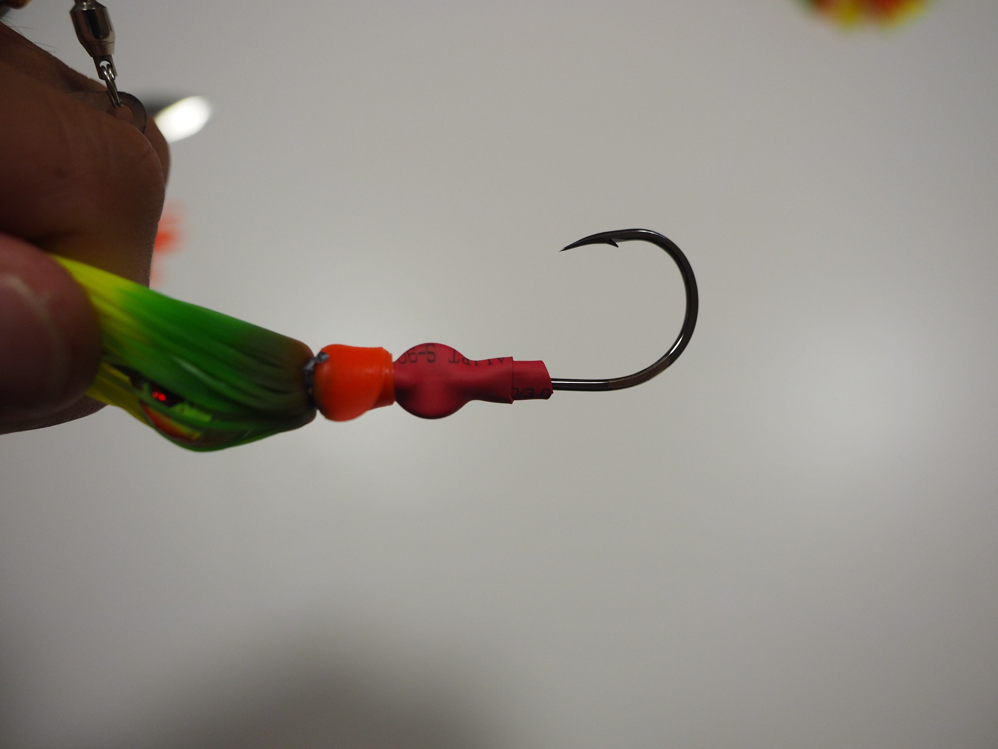 ヘッドは錫を使用し、スカートやヘッド塗装にはUVカラーを使用していますので、ブラックウォーターでも魚に対してのハイアピールが可能。